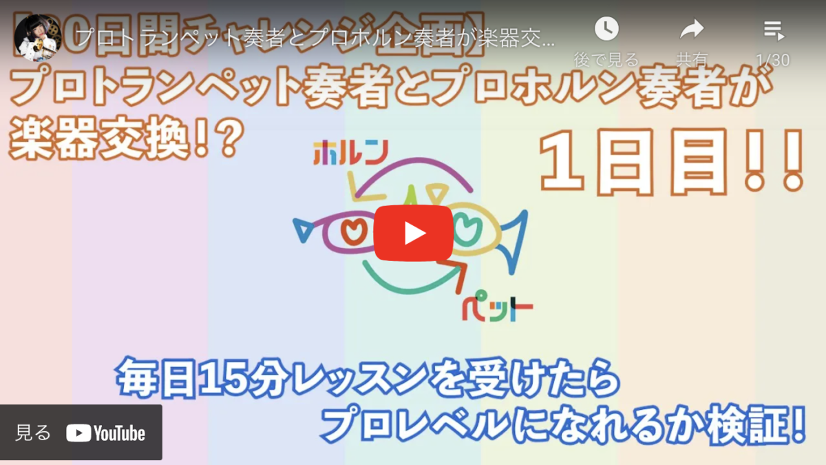 秋山璃帆さん:そうですね。SNSを通じてホルン奏者の虚無森ホルン。さんという方とお会いする機会があって、「30日でプロになるホルンペット」というタグで、YouTubeで1ヶ月間楽器を交換して教え合いませんかとお誘いしたんです。